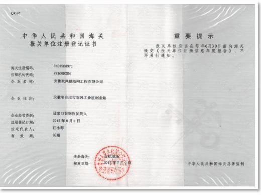 海關報(bào)關單位注冊登記證書