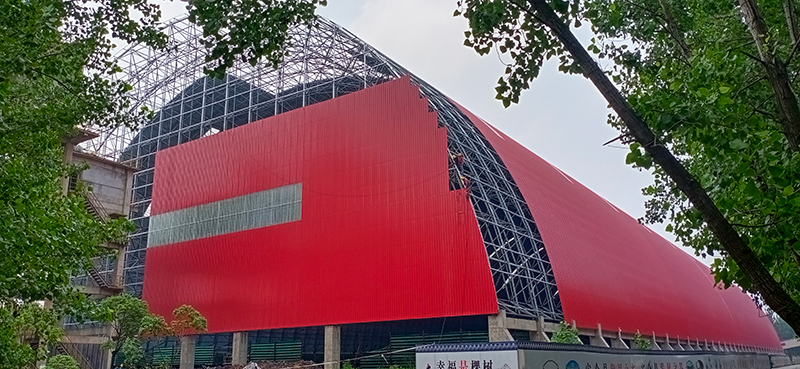 萬噸線4個(gè)長(cháng)形堆場兩端封閉工(gōng)程(原煤堆場、石灰石預均化堆場A、石灰石預均化堆場B、石灰石預均化堆場C)新增熟料庫(直徑45m)原煤堆場環保封閉(85m*250m長(cháng)堆)鋼網架結構及屋面系統的制作安裝